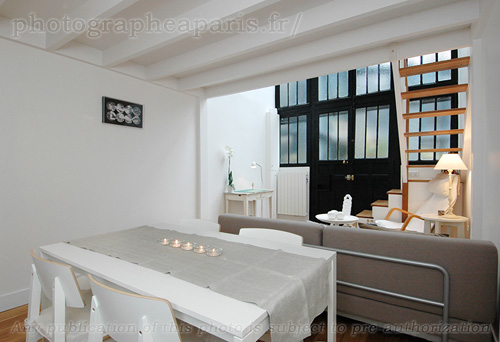 > Atelier d'artiste à Montparnasse - Entrée vue depuis la cuisine