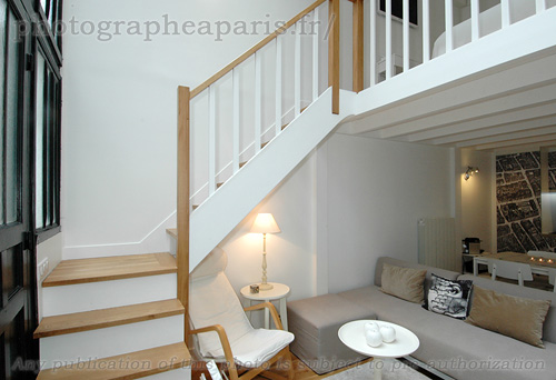 > Atelier d'artiste à Montparnasse - Escalier menant à la mezzanine